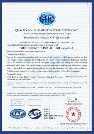 Shandong Jianlong Steel Co., Ltd. si trova nella provincia di Shandong, in Cina. La nostra gamma di vendita copre tubi in acciaio senza soluzione di continuità, tubi in acciaio zincato, piastra in acciaio al carbonio e altri prodotti in acciaio. Abbiamo stabilito un perfetto sistema di gestione scientifica e garanzia della qualità. Ci impegniamo a migliorare continuamente la qualità del nostro prodotto e il livello di servizio per servire più clienti e rendere Jianlong il tuo fornitore di approvvigionamento in acciaio preferito. Jianlong ha un tradi internazionale professionale ed efficiente